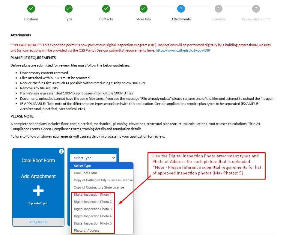 Cathedral City is excited to introduce its new Digital Inspection Program (DIP) — a faster, easier way to complete inspections for common permits. Contractors and owner-builders can now submit project photos online instead of scheduling in-person inspections.